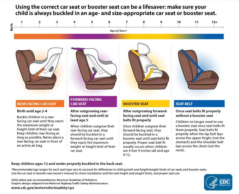 Here are the CDC guidelines for child passenger safety: